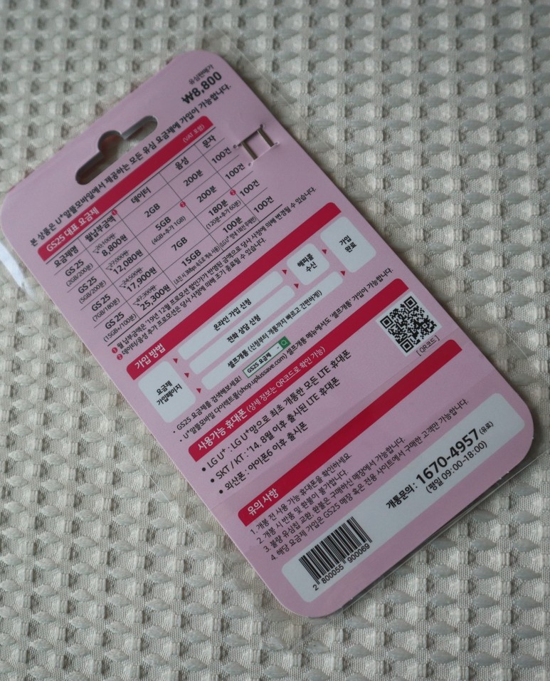 GS25요금제 뿐 아니라 모든 U+알뜰모바일의 요금제는 GS25에서 파는 유심 칩(SIM 카드)를 통해 개통할 수 있습니다. 우리가 자주 가는 그 편의점 GS25 맞습니다! 들어가서 "여기 유심 있나요?" 라고 한 마디만 하시면 끝납니다. 작은 규모의 가게라도 계산대 앞에 유심이 종류별로 놓여있습니다. 선불 유심도 있는데, U+알뜰모바일 및 GS25요금제를 사용하기 위해선 아래 사진과 같은 포장이 되어있는 유심을 구매하면 됩니다.