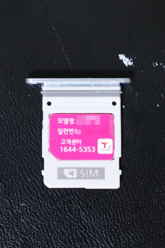 자, 뒤집으면 이런 모습입니다. 유심 트레이에 끼우면 이런 모습인데, 개통 전에는 휴대폰에 넣지 마세요!