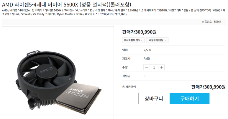 스펙: 6코어 12스레드, 3.7~4.6GHz, 3MB L2 / 32MB L3, TDP 65W
