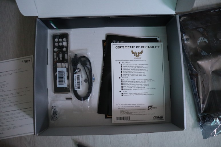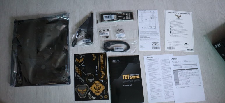 구성품은 꽤 알차게 들어있습니다. TUF GAMING B550 PLUS 메인보드 본체, 와이파이 샤크 안테나, IO쉴드, M.2 고정용 고무 패드와 나사, SATA 케이블 두 개, 간단 조립 설명서, 보증서, 스티커 및 메뉴얼 등이 있네요. 뭐..이미 한 번 PC를 조립해본 적이 있으니 별다른 가이드 같은 건 필요 없습니다. 메인보드 메뉴얼에 자세히 나와있으니 보면서 그대로 하죠. 참고로, AMD를 다루는 건 처음이라 약간 긴장되기도 합니다.