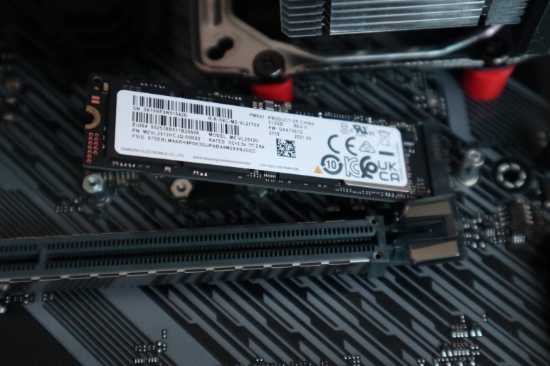 마지막으로, PCIe 4.0을 지원하는 NVMe M.2 SSD입니다. 모델은 삼성의 PM9A1입니다.