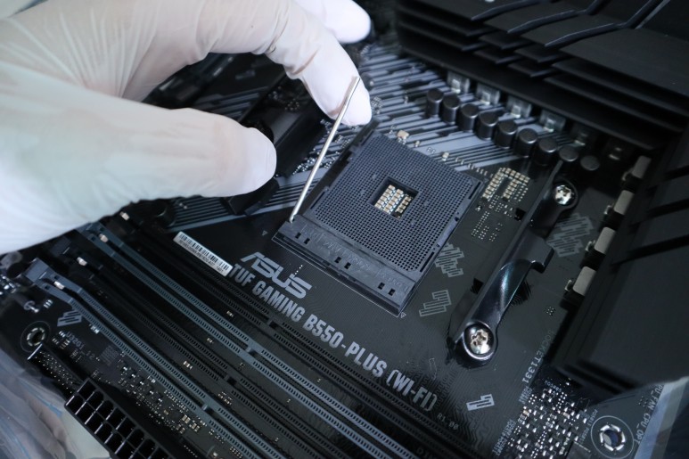 AMD는 AM4 소켓을 사용하는 지금까지 PGA 방식을 사용하기 때문에 보드에는 구멍이 있고, CPU에 핀이 달린 형태입니다. 인텔은 진작 LGA로 넘어와서 보드에 핀이 있고, CPU는 평평하죠. PGA의 단점이라면 한번의 실수로 CPU가 날라간다는 점입니다. 제가 이 CPU를 30만원에 샀으니...핀이 하나라도 휘면 30만원이 날아가는 거죠. 이거 꽤 부담됩니다. 특히나 AMD CPU가 생각보다 무겁던데, 손이 계속 떨려서 미치는 줄 알았네요. 아무튼, 메인보드 옆의 레버를 당겨서 끝까지 젖혀줍니다.