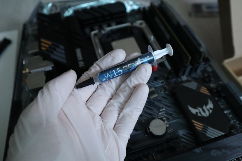 이제 히트싱크를 장착하기 전 서멀구리스를 발라줘야 합니다. 1회분인데, 다 쓰시면 됩니다.