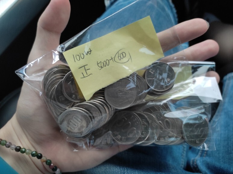 우선 집안에 쌓인 동전을 준비해주세요. 저는 100원과 500원을 모두 가져왔습니다. 50원은.. 나중에 자판기에서 쓰도록 하죠.